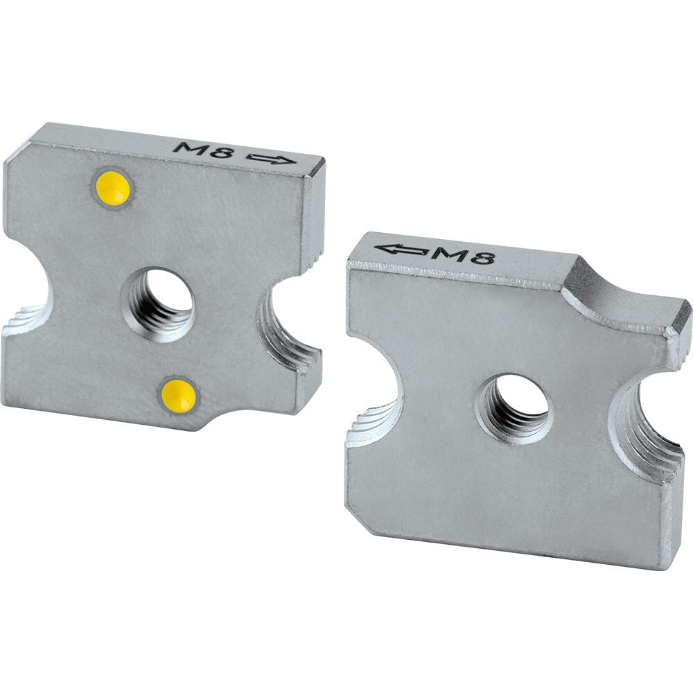 This replacement M8 Cutter Blade Set is for use with the Makita Cordless Threaded Rod Cutter (model XCS03Z). It is ideal for cutting M8 mild steel or stainless steel threaded rod. The blades provide spark-free cuts that are clean and burr-free, allowing easy hand-threading of fastener or nut. The set features reversible double-edged cutting dies for twice the life of the blade.