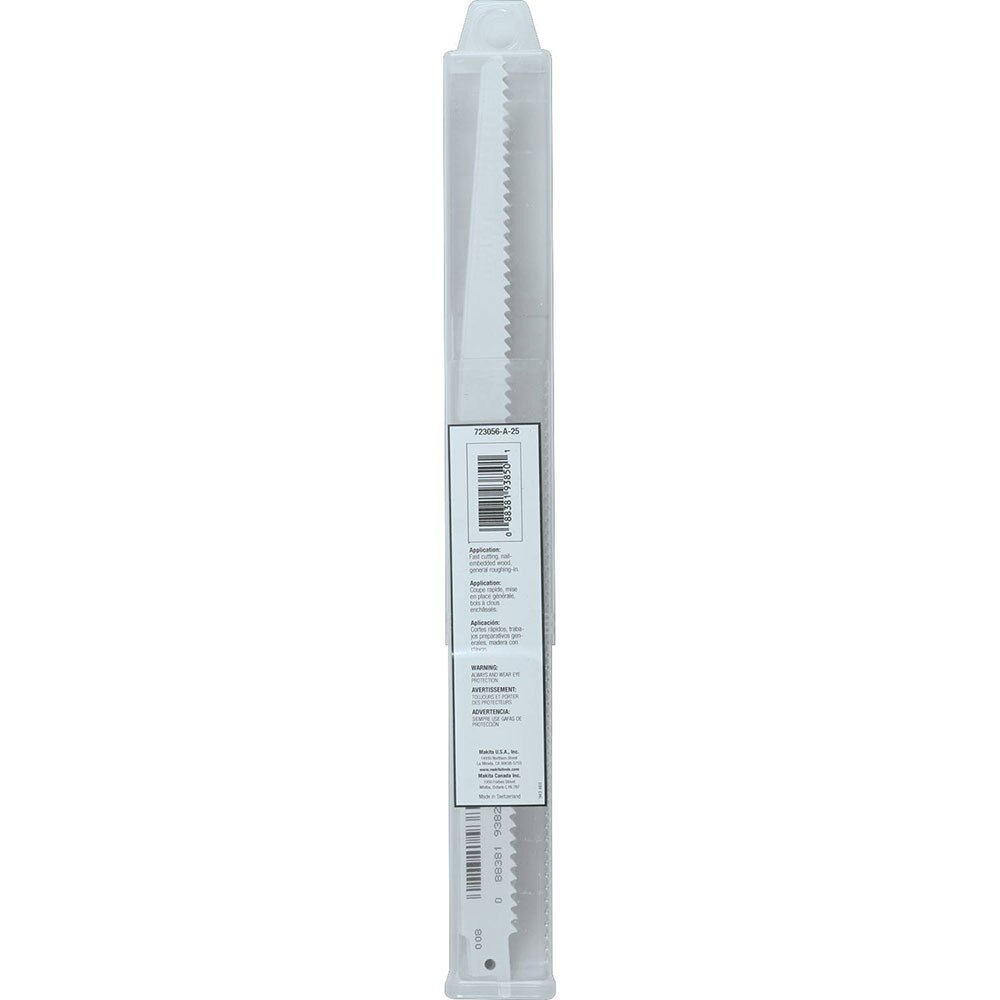 Makita-723056-A-25 Wood Cutting Reciprocating Saw Blades are made from high quality steel for clean cuts and longer life. They are designed to cut through a variety of wood building materials. The blades feature a 3/4 in. width for faster cutting.