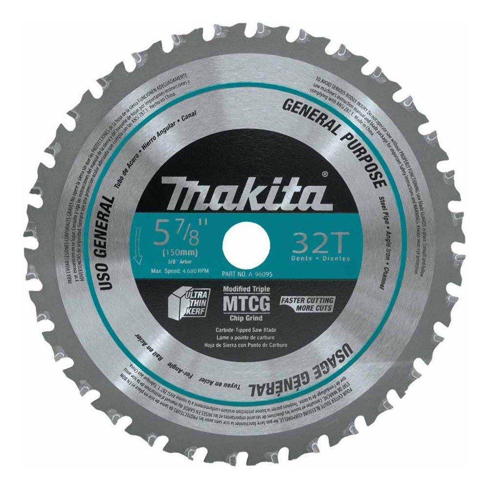 The Makita 5-7/8 In. . Carbide-tipped metal cutting saw blade is the ideal accessory for the Makita 18V LXT® Lithium-Ion 5-7/8 in. Cordless metal cutting saw (sold separately). The Makita metal cutting saw blade has an ultra-thin kerf design that provides smoother cuts with less drag on the motor and minimal material loss. It is ideal for cutting pipe, angle iron, channel, and more.