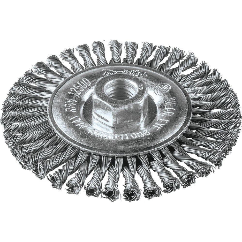 Makita Stringer Bead Twist Wire Wheels are designed to work with angle grinders in a variety of surface preparation activities. The high quality carbon steel wire is engineered for long service life. It is ideal for hard to reach places, and for surface preparation on welds, piping and pipe grooves.