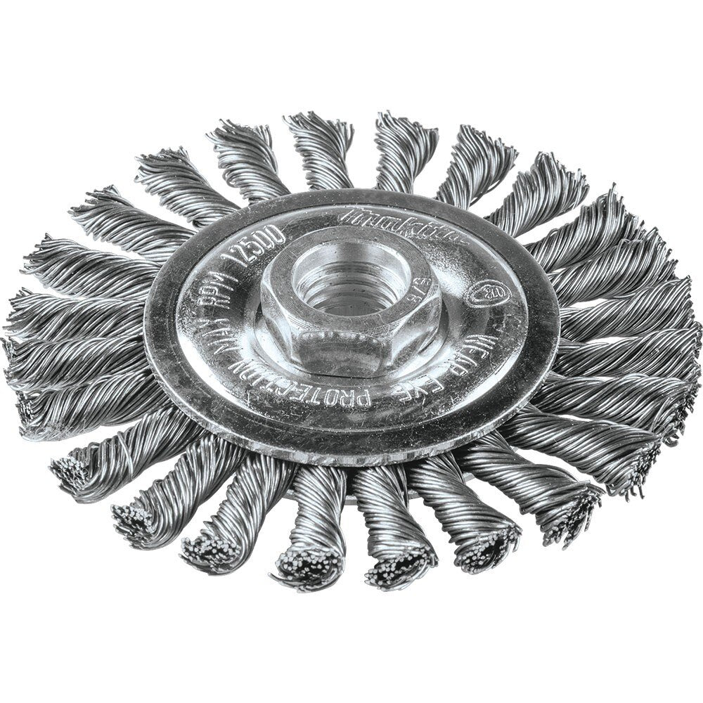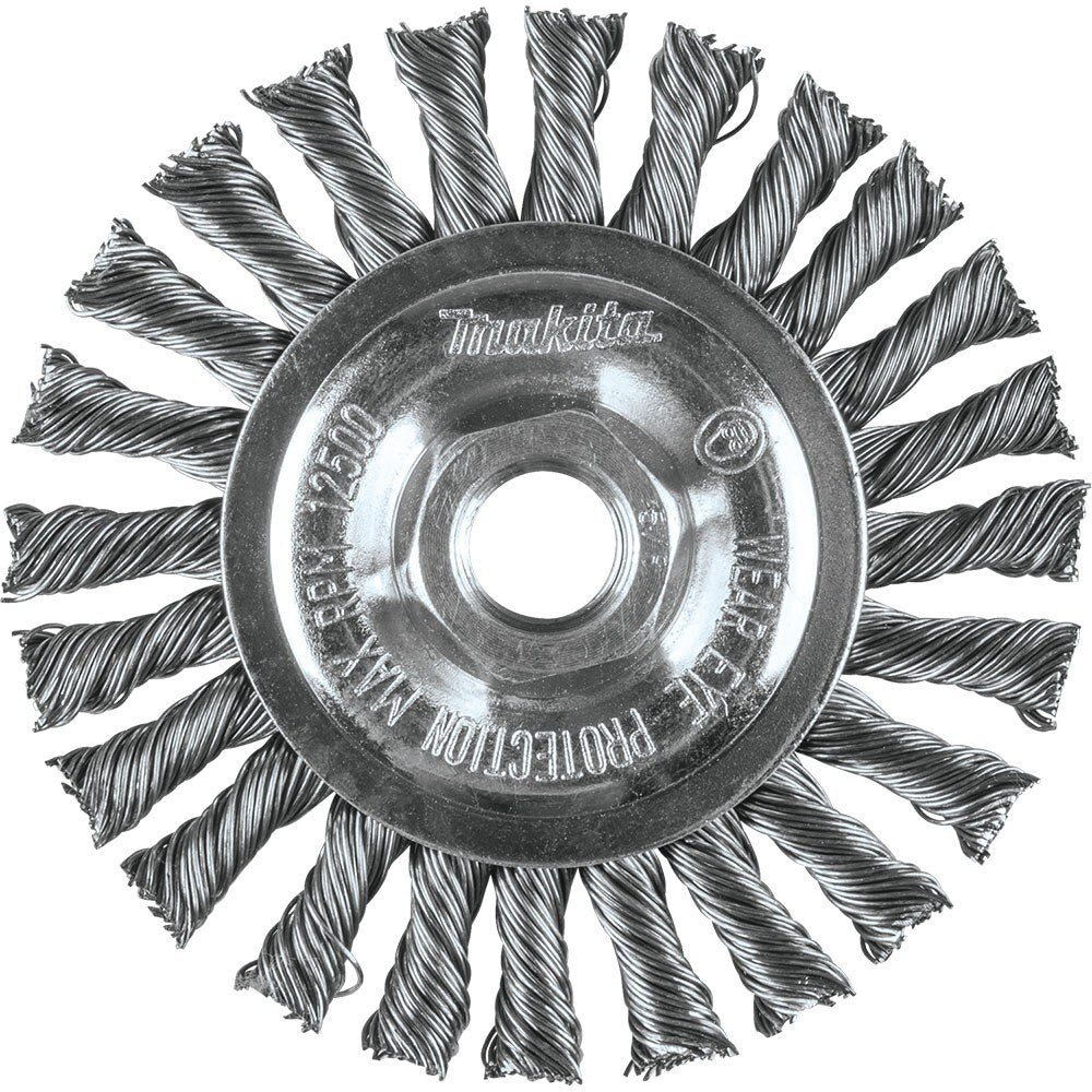 Makita Cable Twist Wire Wheels are designed to work with angle grinders for a variety of material removal applications. The .020" type 302 stainless steel wire is corrosion resistant and engineered for long service life. The wheels are ideal for cleaning welds.