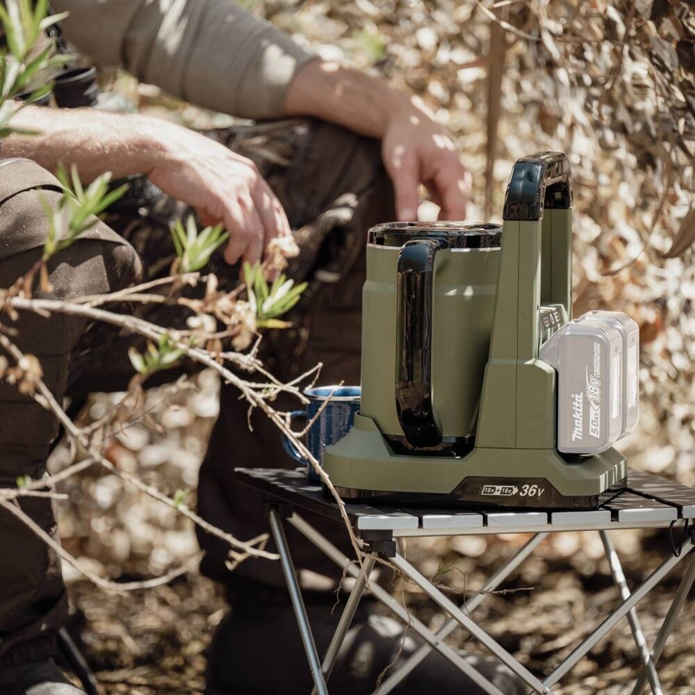 Get outside with Outdoor Adventure, a new series of cordless products that operate within the LXT system. Outdoor Adventure Products feature advanced technology, delivering maximum performance and efficiency for the outdoors. Makita offers hundreds of products within the 18V LXT system so you can create your own adventure. Get the convenience of boiling hot water anywhere while enjoying the outdoors with the Outdoor Adventure™ 36V (18V X2) LXT Hot Water Kettle (ADTK01). The kettle can produce 27oz of hot water in just nine minutes when powered by two 18V LXT 5.0Ah batteries (sold separately). For added convenience, the kettle automatically shuts off when the water is boiled. It has a boil-dry feature that does not allow for operation when empty, and a sensor that prevents the kettle from operating when not on a stable surface. The Kettle has a convenient carry handle on the top for easy portability. It’s part of Makita’s expanding 18V Lithium-Ion System, the world’s largest cordless tool system powered by 18V lithium-ion slide-style batteries. Makita 18V LXT Lithium-Ion Batteries have the fastest charge times in their categories, so they spend more time working and less time sitting on the charger.