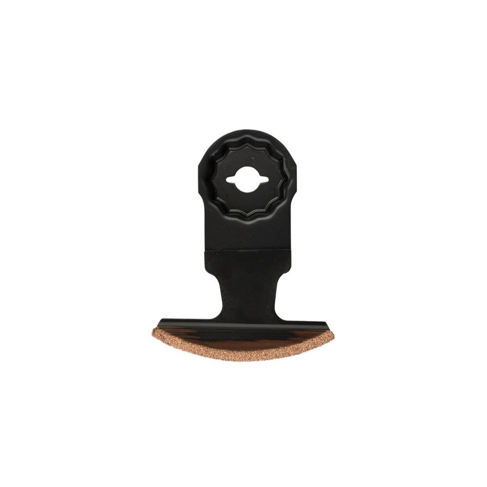 The Makita StarlockMax® Oscillating Multi-Tool 2-3/4" Hard Metal with Tungsten Carbide 50 Grit Grout and Abrasive Segmented Saw Blade is a versatile addition to the Makita Oscillating Multi-Tool (XMT04 sold separately). This segmented blade is engineered for easy maneuverability into corners and better control between tiles. For use in cutting and removing grout, joint material, tile, and epoxy/fiberglass, along with being suitable for plasterboard and routing grooves in marble and porous concrete for laying concealed cables and pipes. The blade is color-coded brown for easy identification.