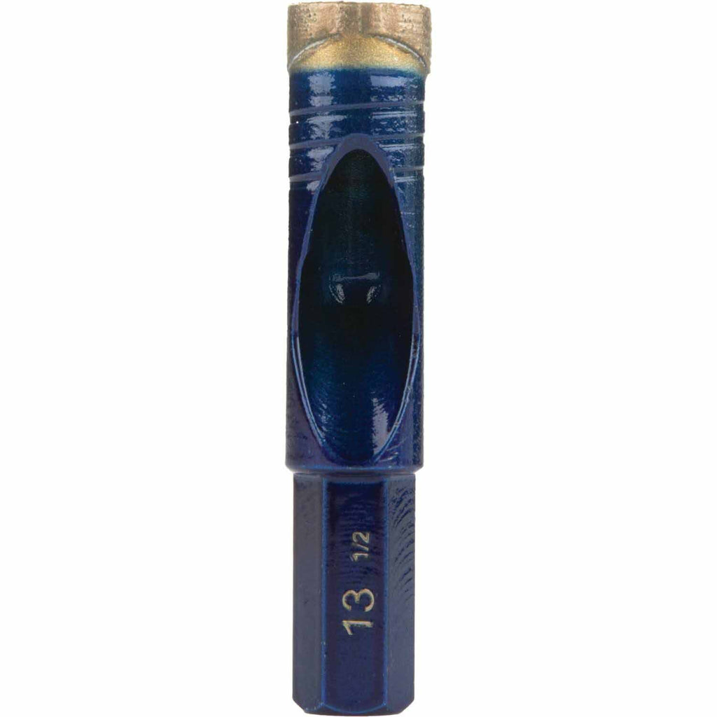 The ½” Diamond Drill Bit is an ideal accessory for drilling through ceramic, terracotta, porcelain, marble or granite tiles. It features a multi-layered sintered diamond tip for longer life and a large, angled extraction port for easy material slug ejection. Reverse spiral threads maintain efficiency and performance by delivering water to the drilling location. The versatile hex shank allows for use with driver-drills and hammer driver-drills, in rotation-mode only. For maximum performance, use with the Makita Dressing Stone (E-11754, sold separately).