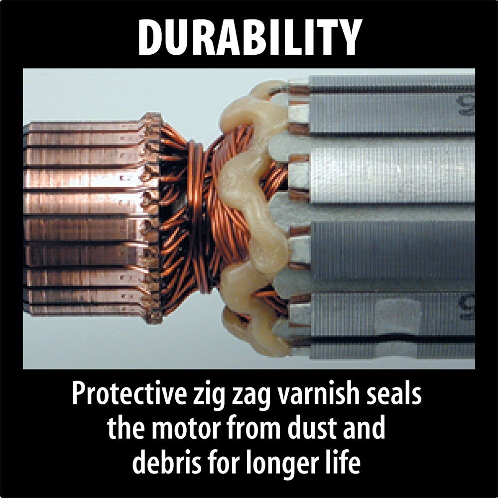 - Labyrinth construction seals and protects the motor and bearings from dust and debris for longer tool life