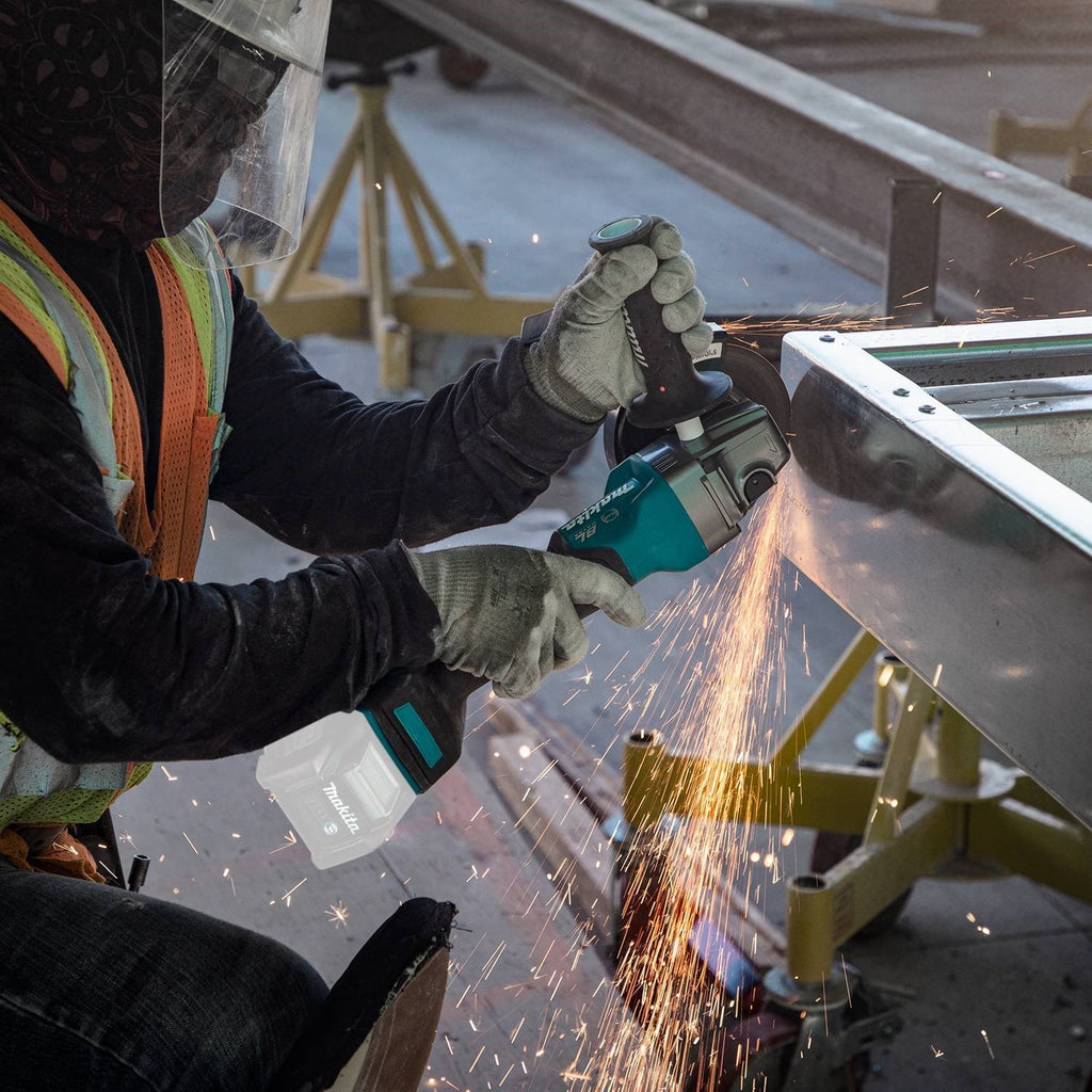 The 40V max XGT® Brushless Cordless 4-1/2" / 5” Paddle Switch Angle Grinder with Electric Brake (GAG03Z, tool only) delivers corded grinding performance without the cord for the most demanding applications. It's powered by a Makita-built brushless motor which delivers 8,500 RPM for heavy-load applications and increased power and speed. The GAG03Z offers up to 60% faster cutting speed when cutting #5 (5/8”) rebar. It is ideal for grinding and cutting a wide range of materials including tile, concrete, pipe, conduit, and more. An electric current limiter helps protect the motor from overload in high-torque applications. Makita’s exclusive Automatic Speed Change™ technology automatically adjusts speed and torque during operation for optimal performance. Additional features include an electric brake that stops the grinding or cut-off wheel in 2 seconds or less and Active Feedback-sensing Technology (AFT®) that turns the motor off if rotation of the wheel is forced to a stop. A large paddle switch provides power-start press points at multiple grip positions. A quick guard rotation provides tool-less adjustments for increased productivity. Anti-restart protection is engineered to prevent motor start-up when the battery is inserted while the switch is locked on. A soft start suppresses start-up reaction and provides smooth start-ups. Wire mesh intake covers are engineered to prevent debris from entering the motor. The GAG03Z is also equipped with Makita's Extreme Protection Technology (XPT™), a series of protective seals inside the tool. XPT is designed to improve a tool’s operation in harsh conditions by channeling water and dust from key internal components. Reinforced metal gear housing provides additional durability on the job site. XGT is a system of equipment, tools, batteries and chargers utilizing 40v max lithium-ion batteries. XGT is engineered to deliver high power to take on high-demand applications, allowing users to completely transition to a cordless job site. XGT is equipped with advanced brushless motor engineering, intelligent digital communication, and superior durability features to outpower, outsmart and outlast the competition.