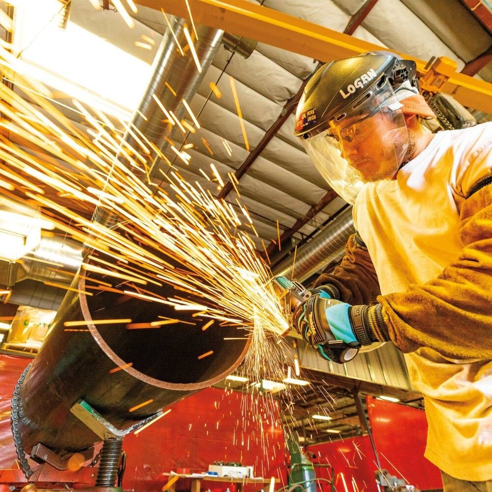 - Electric brake stops the grinding or cut-off wheel in 2 seconds or less for maximum productivity