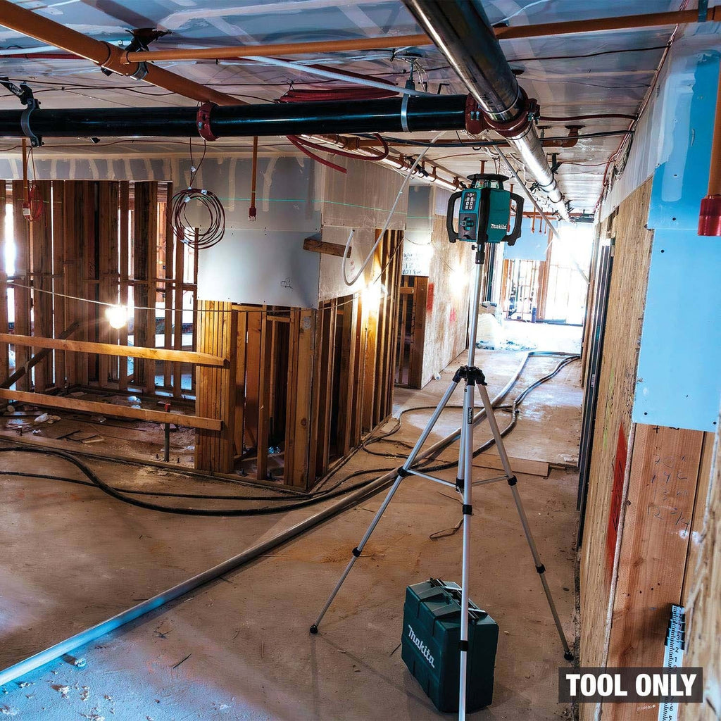 The Makita SKR001Z 18V LXT Green Exterior Dual Slope 360 Degree Rotary Laser is built for accurate, long-distance leveling and grading up to 2,600 ft. It features three rotation speeds, self-leveling with automatic calibration, and a hard plastic case for transport (battery and charger sold separately).