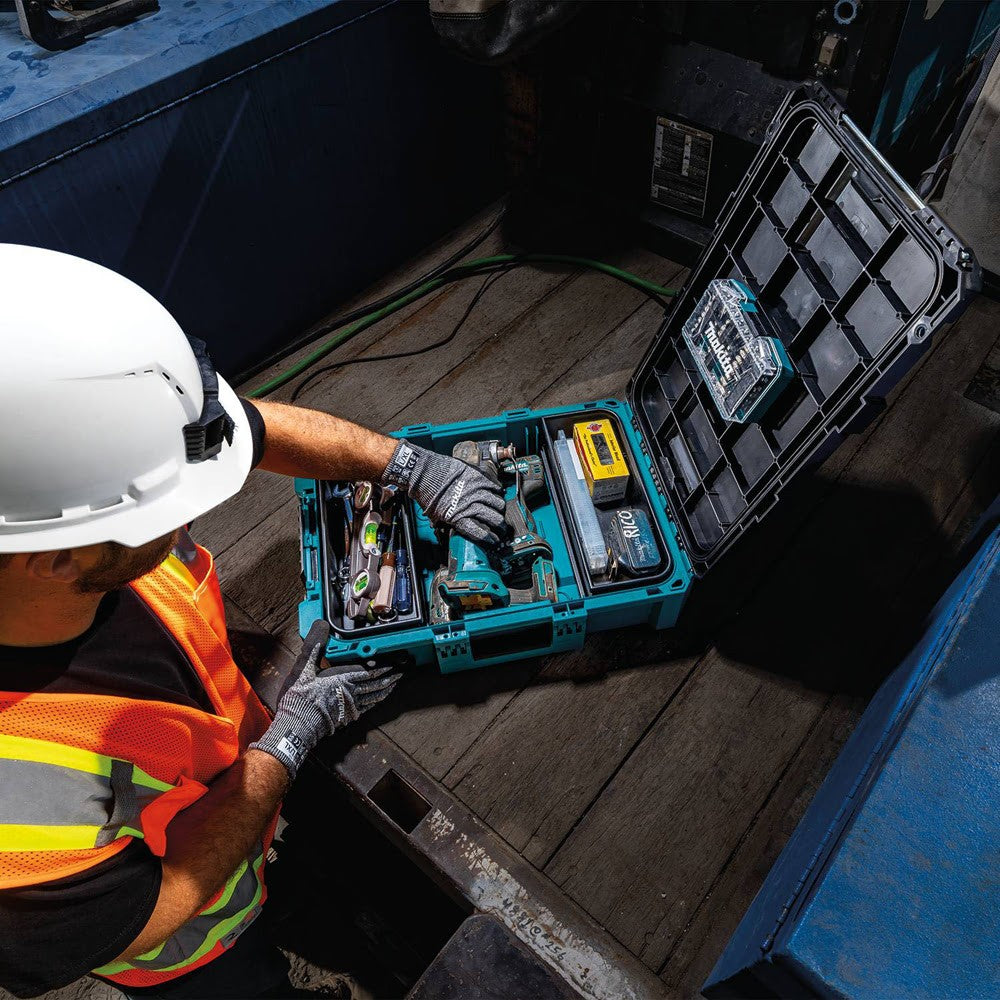 Makita MAKTRAK™ is the Next Generation in modular storage. The MAKTRAK™ Medium Tool Box (T-90037) is a modular storage solution to transport, access, store and organize job site equipment and tools. It has a holding capacity of 1,123 cu.in. and up to 75 lbs. It’s equipped with large glove-friendly latches for easy access to tools, accessories, batteries, chargers and small parts. The T-90037 is constructed of impact-resistant copolymer to withstand the toughest jobsite conditions. The deep trays hold a variety of hand tools, and the shallow trays have multiple dividers for small parts. The MAKTRAK™ System is designed, engineered and made in the U.S.A. with global materials, and built on four core functions: Transportation, Access, Storage and Organization. Each function is backed by unique design and engineering that makes MAKTRAK™ the most advanced system on the market.