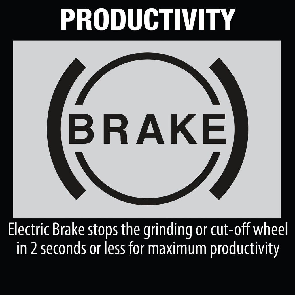 - Electric Brake stops the grinding or cut-off wheel in 2 seconds or less for maximum productivity