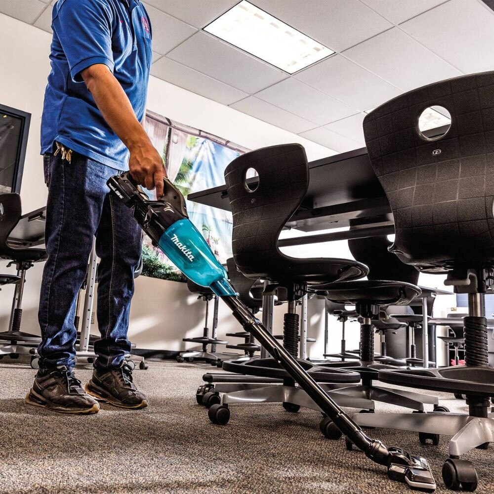 The Makita® 18V LXT® Brushless Cordless Vacuum, Trigger w/Lock (XLC08) is a compact and powerful cordless vacuum with strong suction for fast and efficient cleaning. It features two times more suction power for faster cleaning*. The XLC08 can be used with trigger mode or slide switch mode for ease and convenience. The Makita-built brushless motor runs cooler and more efficiently; delivering up to 90 Watts of power. Convenience features include a compact, ergonomic design that reduces operator fatigue and a thermoplastic hand grip for longer life and a more comfortable feel. It also features a bagless cloth filtration system that allows for easier cleaning and quicker debris disposal, as well as increased storage capacity for longer time between waste disposal. It weighs only 3.0 lbs. with battery for reduced operator fatigue. It’s part of Makita’s expanding 18V LXT® system, the world’s largest cordless tool system powered by 18V lithium-ion slide-style batteries. Makita 18V Lithium-Ion batteries have the fastest charge times in their categories, so they spend more time working and less time sitting on the charger. For improved tool performance and extended battery life, Makita created Star Protection Computer Controls™. Star Protection is communication technology that allows the Star Protection-equipped tool and battery to exchange data in real time and monitor conditions during use to protect against overloading, over-discharging, and overheating. For increased versatility, the tool can also be powered by Makita 18V LXT® and Compact Lithium-Ion batteries with the star symbol on the battery indicating Star Protection inside. *Compared to XLC03