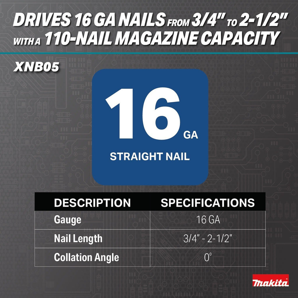 - (1) 18V LXT Brushless 16 Ga. Straight Finish Nailer (Tool Only)