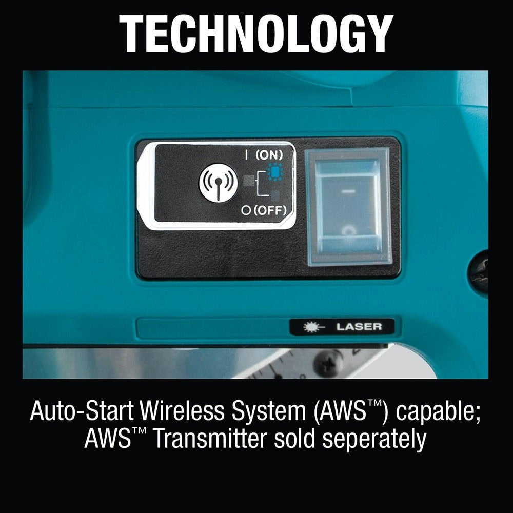 Makita is a pioneer in brushless motor engineering, battery technology, and miter saw innovation. This combined expertise resulted in the 18V X2 LXT® (36V) Lithium-Ion Brushless 12" Dual Bevel Sliding Compound Miter Saw Kit (XSL08PT), AWS™ and Laser. It's powered by two 18V Lithium-Ion batteries for 36V power and performance, but without leaving the 18V LXT® platform. X2 LXT technology delivers increased power, speed, and run time, without the hassles of a cord. Get up to 175 cuts per charge in 2x12 SPF lumber with two 5.0Ah batteries. The efficient BL™ Brushless Motor runs cooler and more efficiently for longer tool life and delivers up to 4,400 RPM for fast and smoother cutting. The XSL08PT also features Automatic Speed Change™ technology to adjust cutting speed and torque under load for optimum performance. For improved efficiency, it’s equipped with Auto-Start Wireless System technology. AWS™ utilizes Bluetooth® technology for wireless communication between the tool and dust extractor (sold separately). When the trigger of the AWS-equipped XSL08PT is engaged, the AWS-equipped dust extractor powers-up. When the trigger is released, the dust extractor powers-down. AWS is intelligent communication that eliminates cords and excessive noise since the dust extractor runs only when the tool is running. The XSL08PT has a unique 2-steel rail sliding system design that offers single slide-glide operation for smooth and dead-on accurate cutting right out of the box, as well as a reduced overall footprint that allows the saw to be positioned flush against a wall. The innovative direct-drive gearbox and guard system is engineered for increased vertical cutting capacity (6-3/4"), crown molding cutting capacity (8" nested), and 15" crosscuts at 90 degrees. The saw miters 0° to 60° left and right, with positive stops at 0°, 15°, 22.5°, 31.6°, 45° and 60° (left or right). The bevel lock is located in the front of the saw for easy access and quick adjustments from 0° to 48° (left and right). The direct drive gearbox with soft start is a key point of difference. Direct drive enables smoother start-ups and consistent, constant power with no belts to slip or replace. Additional features include a built-in laser that indicates the line-of-cut, dual dust collection ports for excellent dust extraction performance and an electric brake provides added convenience. It also has a large-sized aluminum base that improves the stability of cutting stock for more efficient cutting. The XSL08PT includes a 12" 60T Carbide-Tipped Max Efficiency Miter Saw Blade. The thin-kerf design provides smoother cuts with less drag on the motor and minimal material loss. Compared to standard blades the Max Efficiency Miter Saw Blade delivers up to 100% faster cutting. It’s part of Makita’s expanding 18V Lithium-Ion system, the world’s largest cordless tool system powered by 18V Lithium-Ion slide-style batteries. Makita 18V Lithium-Ion batteries have the fastest charge times in their categories, so they spend more time working and less time sitting on the charger. For improved tool performance and extended battery life, Makita created Star Protection Computer Controls™. Star Protection is communication technology that allows the Star Protection-equipped tool and battery to exchange data in real time and monitor conditions during use to protect against overloading, over-discharging and overheating.